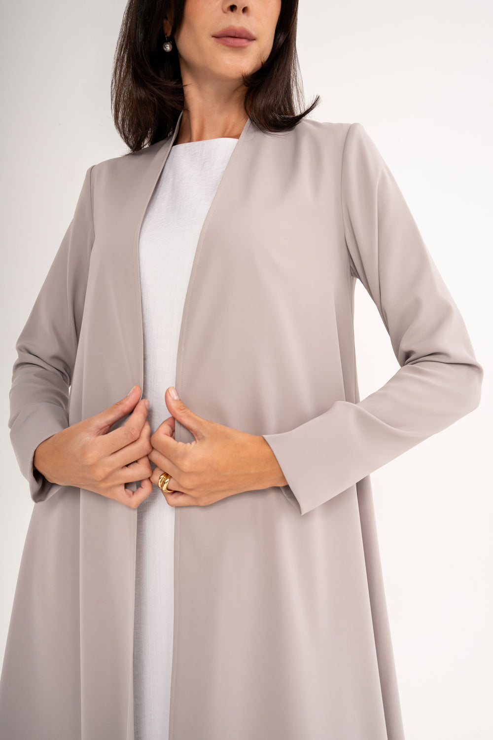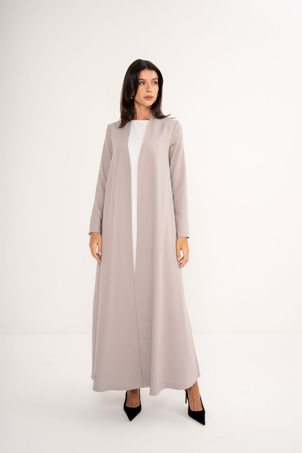 Elegant yet effortless, this abaya is crafted from soft crepe with a smooth full lining, in a versatile neutral shade that works for any time and season.